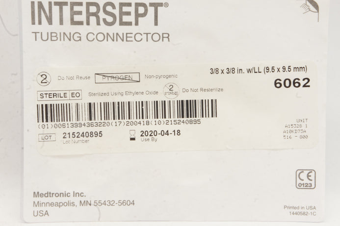 - Medtronic 6062 Intersept Tubing Connector 3/8 x 3/8 inch (x)
