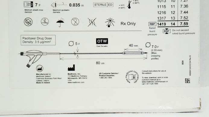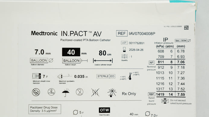 - Medtronic IAV07004008P Paclitaxel-coated PTA Balloon Cath.035In,7.0 x 40mm x80cm