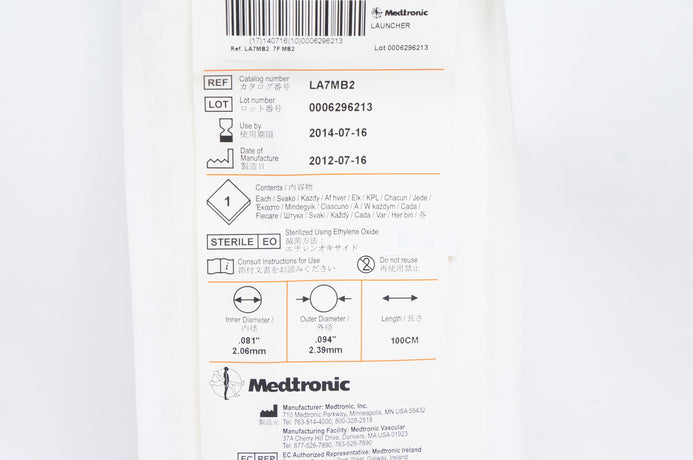 Medtronic LA7MB2 Launcher Guiding Catheter 7F x 100cm