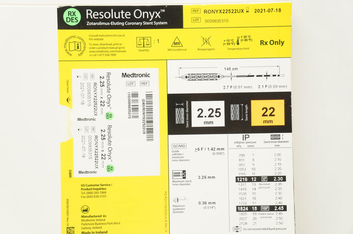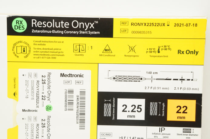 - Medtronic RONYX22522UX Resolute Onyx Coronary Stnt System 2.25mm x 22mm (x)