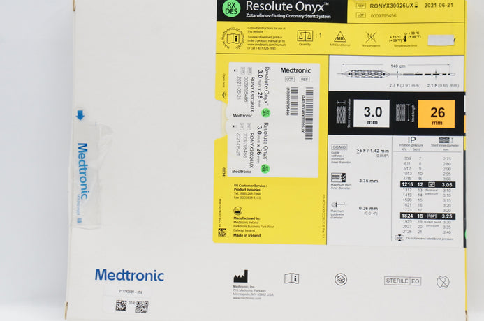 - Medtronic RONYX30026UX Resolute Onyx Coronary Stnt System 3.0mm x 26mm (x)