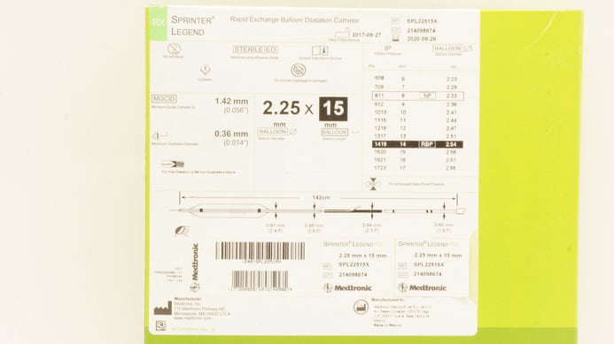 - Medtronic SPL22515X Rapid Exchange Balloon Dilatatiuon Cath. 2.25 x 15mm (x)