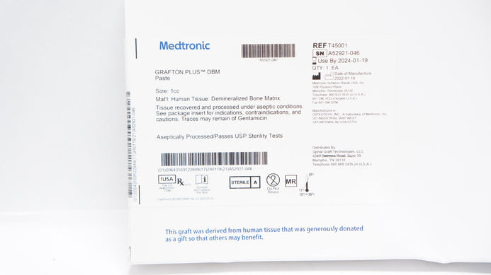 - Medtronic T45001 Grafton Demineralized Bone Matrix Plus DBM Paste 1cc (x)
