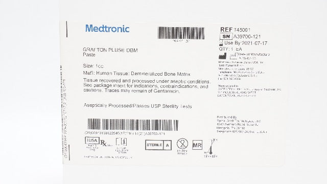 - Medtronic T45001 Grafton Demineralized Bone Matrix Plus DBM Paste 1cc (x)