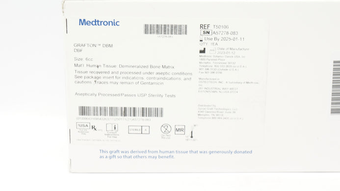 - Medtronic T50106 Grafton DBF Demineralized Bone Matrix 6cc