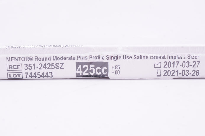 - Mentor 351-2425SZ Round Moderate Plus Saline Breast Implant Sizer 425cc (x)