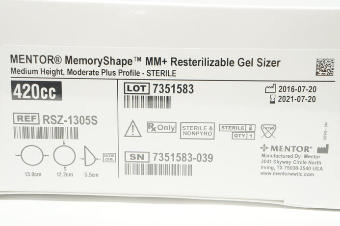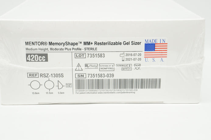 - Mentor RSZ-1305S Memory Shape MM+ Resterilizable Gel Sizer 420cc (x)