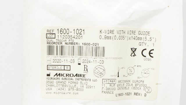 - Microaire 1600-1021 K-Wire With Wire Guide, 0.035inch x 5.5inch (x)