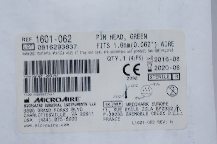 - MicroAire 1601-062 Pin Head, Green Fits 0.062inch Wire