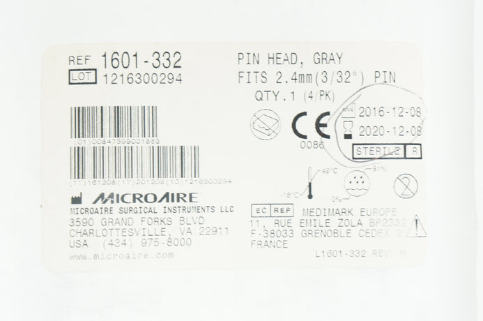 - MicroAire 1601-332 Pin Head, Gray Fits 2.4mm Pin (x)