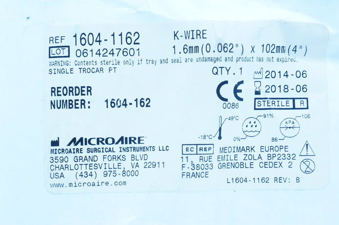 - Microaire 1604-1162 K-Wire 0.062inch x 4inch (x)