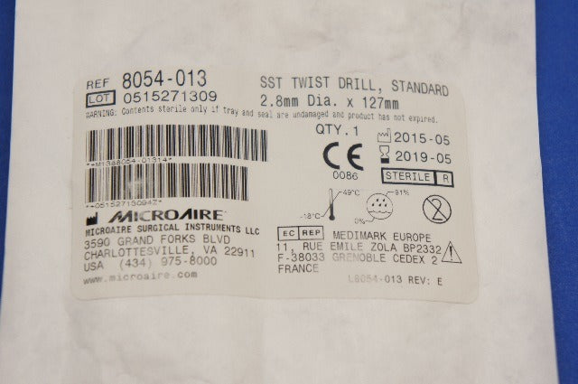 - Microaire 8054-013 SST Twist Drill, Standard 2.8mm Diam. x 127mm