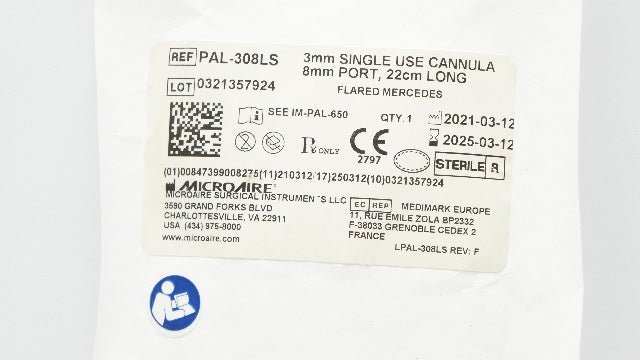 MicroAire PAL-308LS 3.0mm Single Use Cannula 8mm Slot,22cm Long (x)