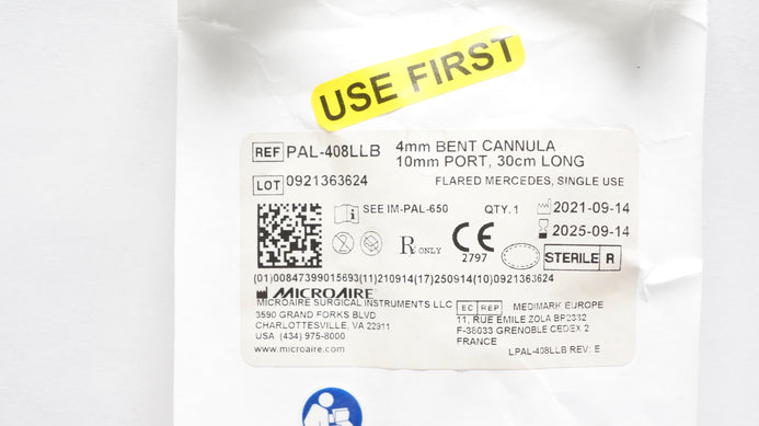 - Microaire PAL-408LLB Bent Cannula 4mm, Port 10mm,Long 30cm Flared Mercedes (x)