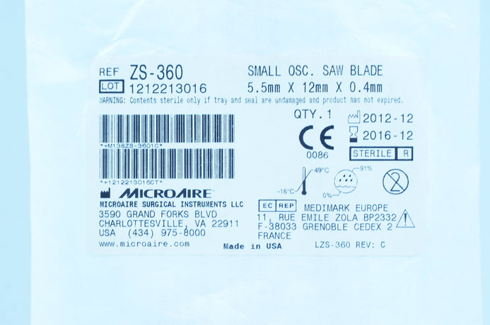 - Microaire ZS-360 Small Oscillating Saw Blade 5.5mm x 12mm x 0.4mm (x)