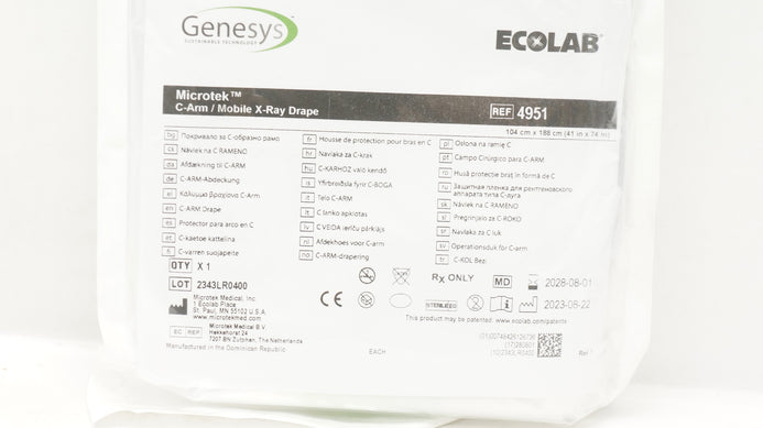 Microtek 4951 Genesys Ecolab C-Arm Mobile X-Ray Drape 41inch x 74inch