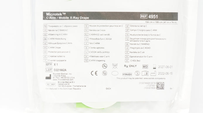 - Microtek 4951 Genesys Ecolab C-Arm Mobile X-Ray Drape 41inch x 74inch