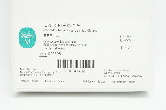 Miltex 1-4 Ford Stethoscope With Shallow Bell And Plastic Ear Tips, Chrome