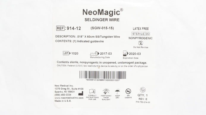 - NeoMagic 914-12 Seldinger .018In x 60cm SS/Tungsten Wire Indicated Guidewire(x)