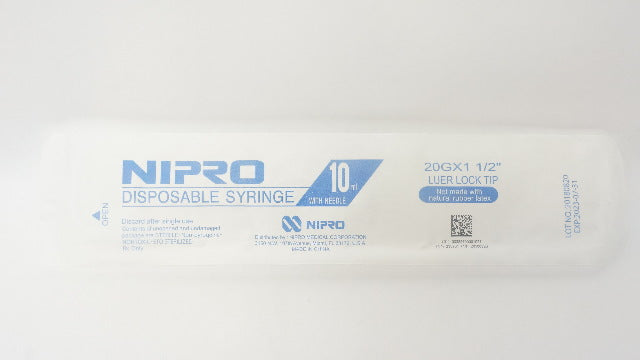 - Nipro Disposable Syringe 10ml with Ndle Luer Lock Tip 20G x 1 1/2inch