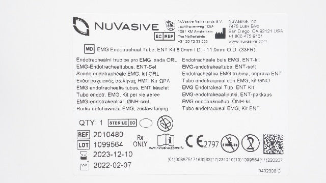 - NuVasive 2010480 EMG Endotracheal Tube ENT Kit 8.0 x 11.0mm (x)