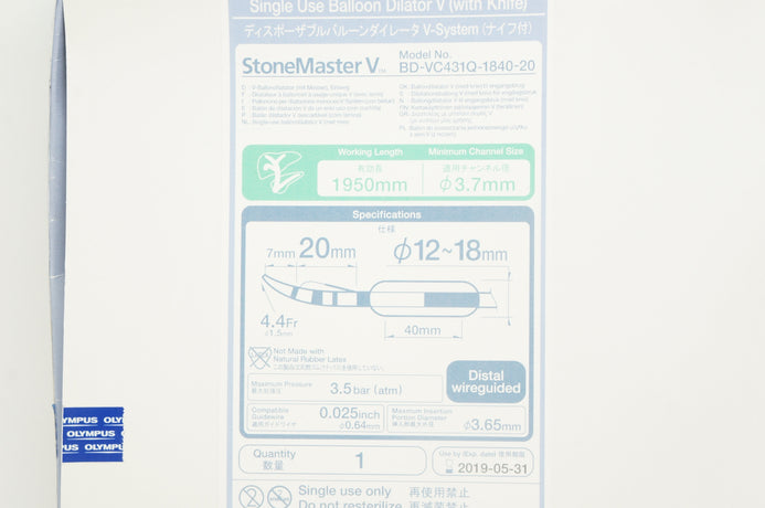 - Olympus BD-VC431Q-1840-20 Balloon Dilator V StoneMaster 1950mm x 3.7mm (x)