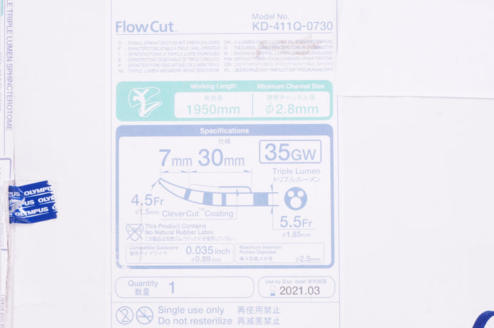 - Olympus KD-411Q-0730 FlowCut Disposable Triple Lumen Sphincterotome 35GW (x)