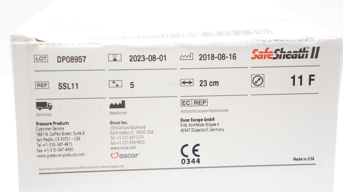 - Oscor SSL11 SafeSheath II Hemostatic Introducer System 11 F (x) - Box of 4