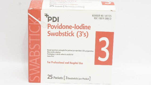 - PDI S41125 Povidone-lodine Swabstick 3 - Box of 25 Packets