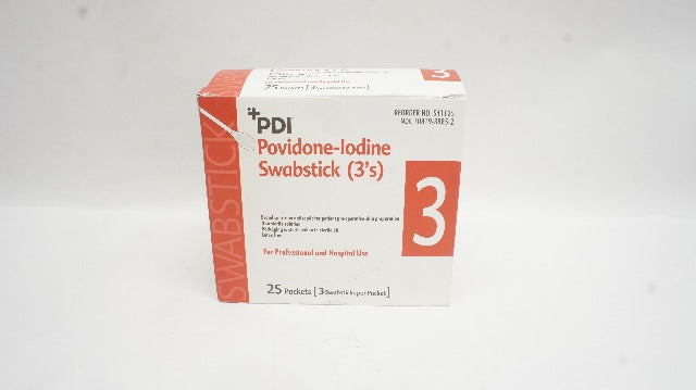 - PDI S41125 Povidone-lodine Swabstick (3's) - Box of 25 Packets