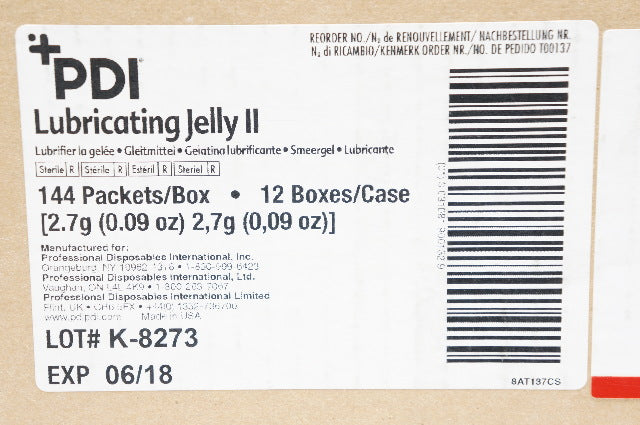 - PDI T00137 Lubricating Jelly II, 2.7 gram, Box of 144 (x) - Case of 12