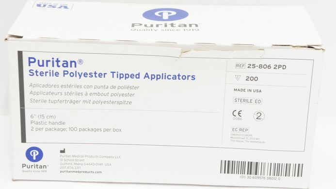 - Puritan 25-806 2PD Sterile Polyester Tipped Applicators 6inch - Box of 55