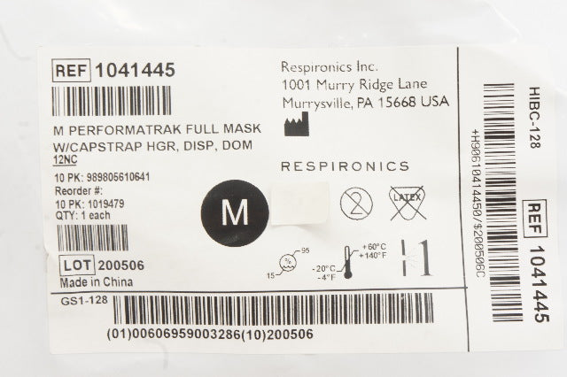 - Respironics 1041445 Performatrak Full Mask W/Capstrap HGR, DISP, DOM, Size M