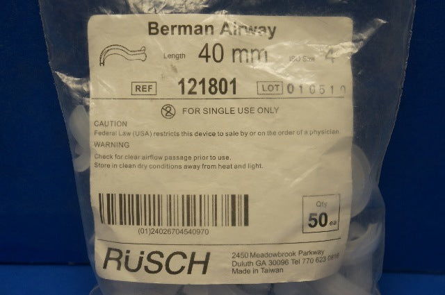 Rusch 121801 Berman Airway 40mm Size 4 ~ Pack of 50