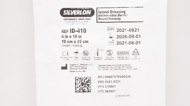 - Silverlon ID-410 Island Antibacterial Barrier Wound Dressing 4 x 10inch