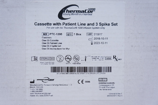 - Smisson-Cartledge PTC-1200 Cassette with Patient Line and 3 Spike Set