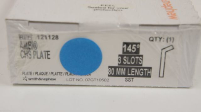 - Smith&Nephew 121128 AMBI CHS Plate 145 degree 3 slots 80mm length (x)