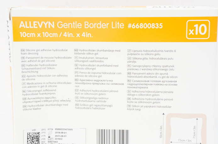 - Smith&Nephew 66800835 Allevyn Gentle Border Lite 4inch x 4inch - Box of 10