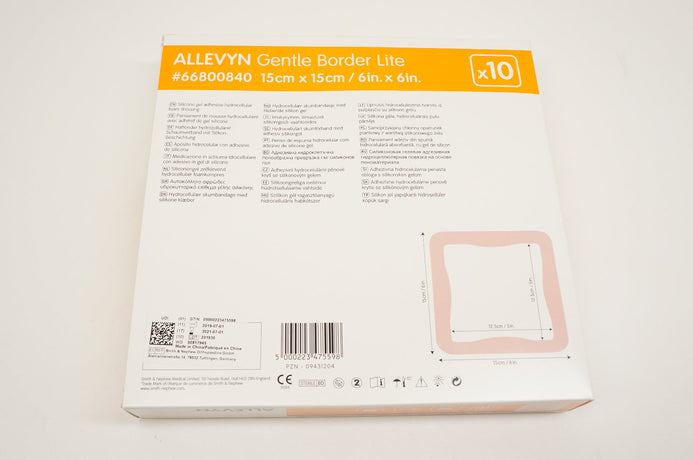 Smith&Nephew 66800840 ALLEVYN Gentle Border Lite 6inch x 6inch - Box of 10