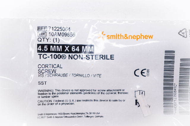 - Smith&Nephew 71225064 TC-100 Non-Sterile Cortical Screw 4.5mm x 64mm