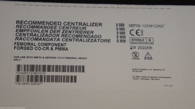 - Smith&Nephew 71316010 Synergy Cemented Stem Recommended Centralizer 8mm Size:10