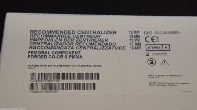 - Smith&Nephew 71316017 Synergy Cemented Stem Recommended Centralizer 13mm Size:17