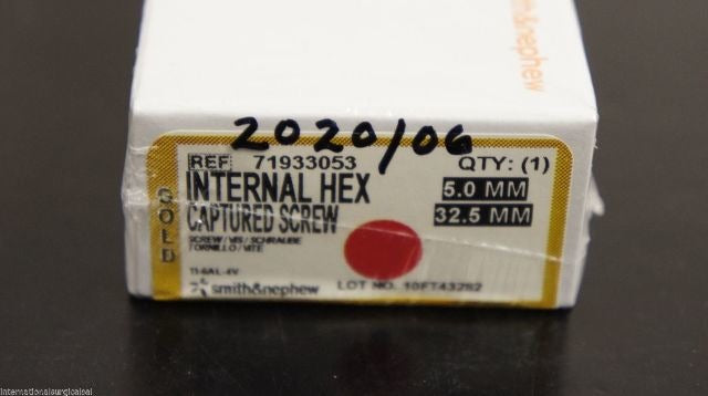 Smith&Nephew 71933053 Internal HEX Captured Screw 5.0mm x 32.5mm Gold