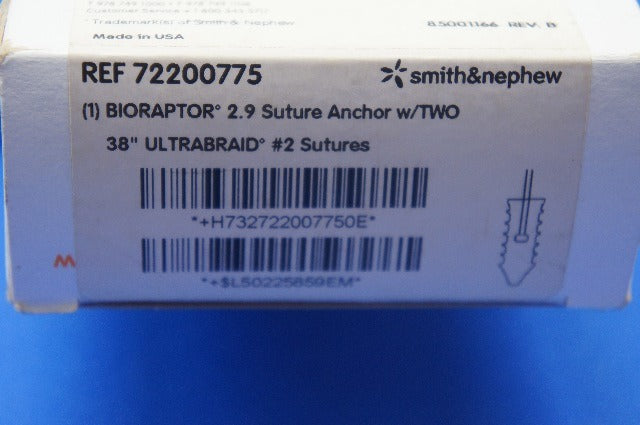 - Smith&Nephew 72200775 Bioraptor 2.9 Suture Anchor w/Two 38 (x)