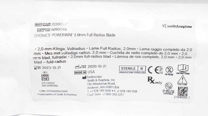- Smith&Nephew 72201507 Dyonics Powermini 2.0mm Full Radius Blade (x)