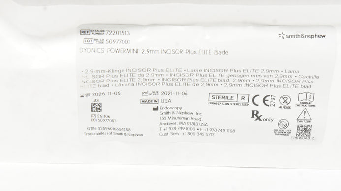 - Smith&Nephew 72201513 Dyonics Powermini Incisor Plus Elite Blade 2.9mm