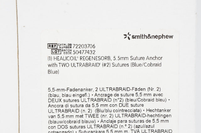 Smith&Nephew 72203706 HEALICOIL REGENESORB 5.5MM ANCHOR WITH TWO ULTRABRAID SUTURES