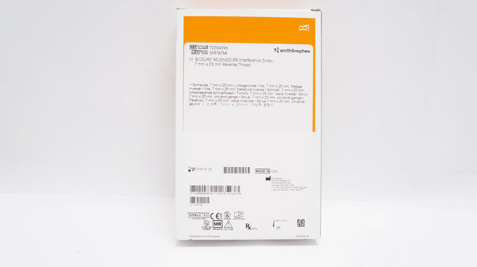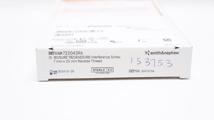 - Smith&Nephew 72204396 Biosure Regensorb Interference Screw 7mm x 25mm (x)