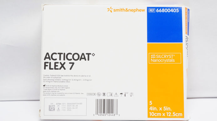 - Smiths&Nephew 66800405 ACTICOAT FLEX 7 Silver-coated 4inch x 5inch - Box of 5