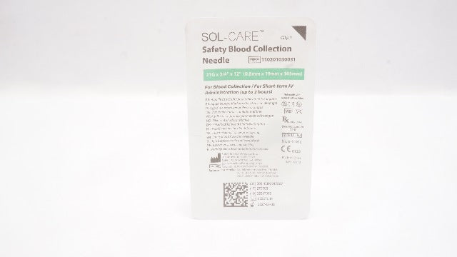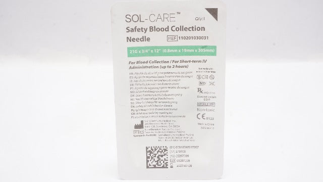 - SOL-Care 110201030031 Safety Blood Collection Ndle. 23G x 3/4inch x 12inch